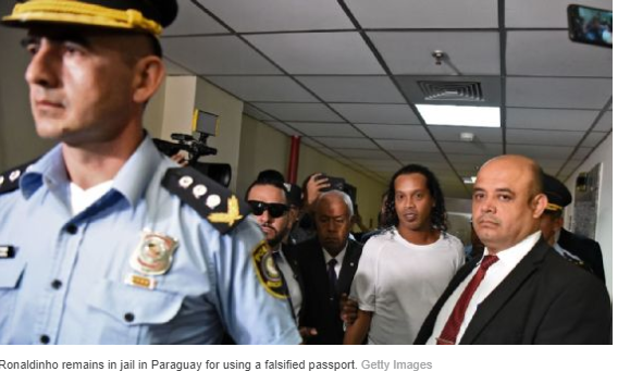 호나우지뉴는 최근 파라과이 수도 아순시온에 있는 한 호텔서 위조된 여권과 파라과이 신분증을 사용한 혐의로 체포돼 조사를 받았다.
