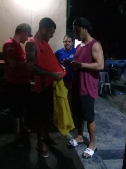 SNS에서 공개된 사진에서 호나우지뉴는 다른 수감자들과 함께 맥주를 마시고 있었다. 뿐만 아니라 자신을 둘러싼 수감자들의 옷에 사인을 하며 안빈 낙도를 즐기고 있었다.