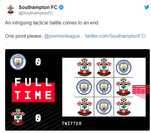 SNS로 라이브로 중계된 사우스햄튼과 맨시티의 틱택토 경기는 무승부로 끝났다. 그러자 사우스햄튼은 "치열한 전술 싸움이었다. 승점 1점 달라"라고 넉살을 떨기도 했다.