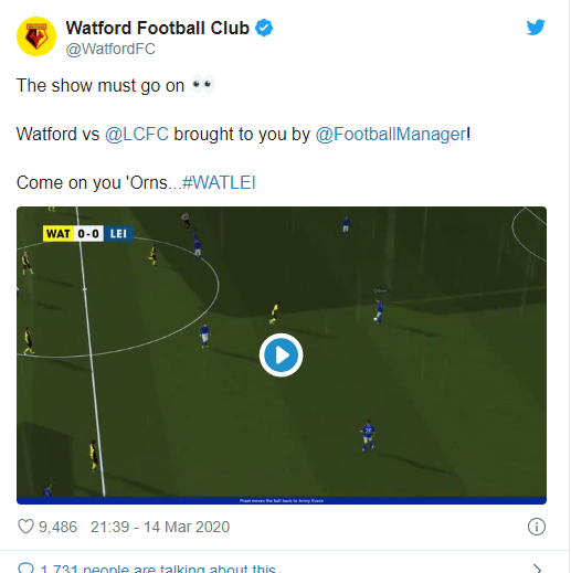 EPL 구단들이 자신의 게임으로 가상 경기를 가지자 풋볼 매니저는 자신들의 공식 SNS에 "멋지다. 오래 볼 수 있었으면 한다. 만약 해고되지 않는다면"이라고 반응하기도 했다.