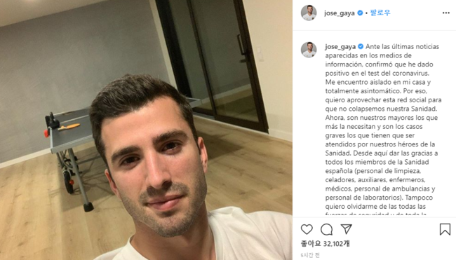 팬들을 안심시킨 가야는 코로나와 싸우는 스페인의 의료진에 대한 고마움과 사회가 병마에 취약한 고연령층을 우선적으로 배려할 것을 당부했다.
