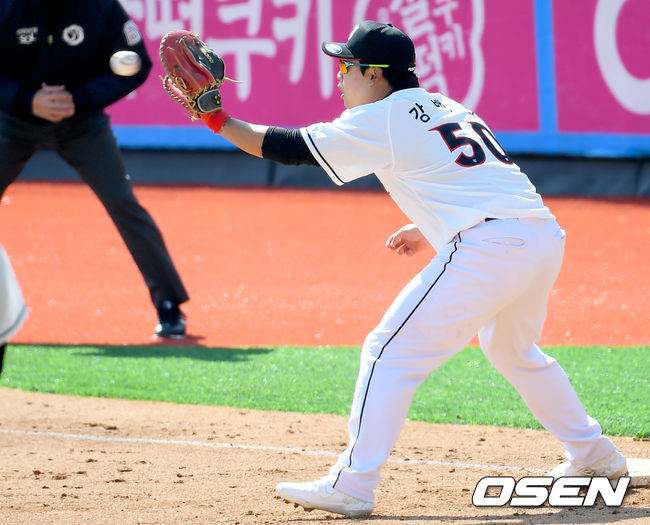 KT 위즈의 강백호(21)가 첫 1루수 선발 출장을 성공적으로 마쳤다