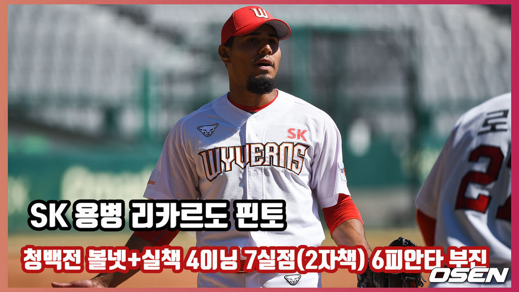 핀토는 22일 인천 SK행복드림구장에서 진행된 자체 청백전에서 4이닝 6안타 7실점(2자책)을 기록하며 불안한 모습을 보였다.