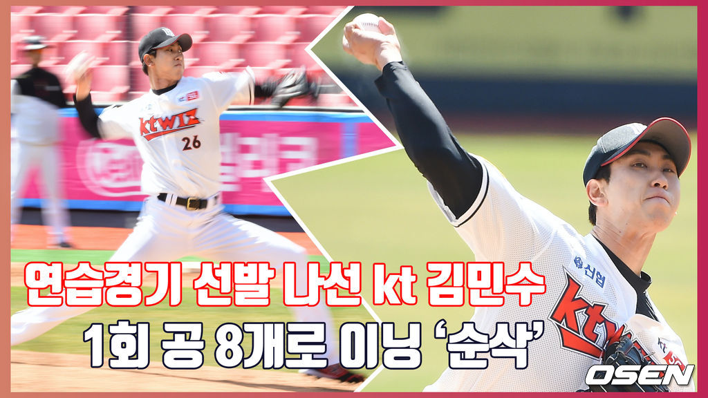 KT 김민수가 자체 연습경기에서 무실점 피칭을 선보였다.