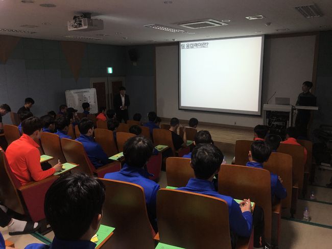 선수들의 멘탈 트레이닝 및 위기 상황에서 슬기롭게 대처하는 방법, 원팀을 위해 슬기롭게 소통하는 방법 등에 대해 강의했다.