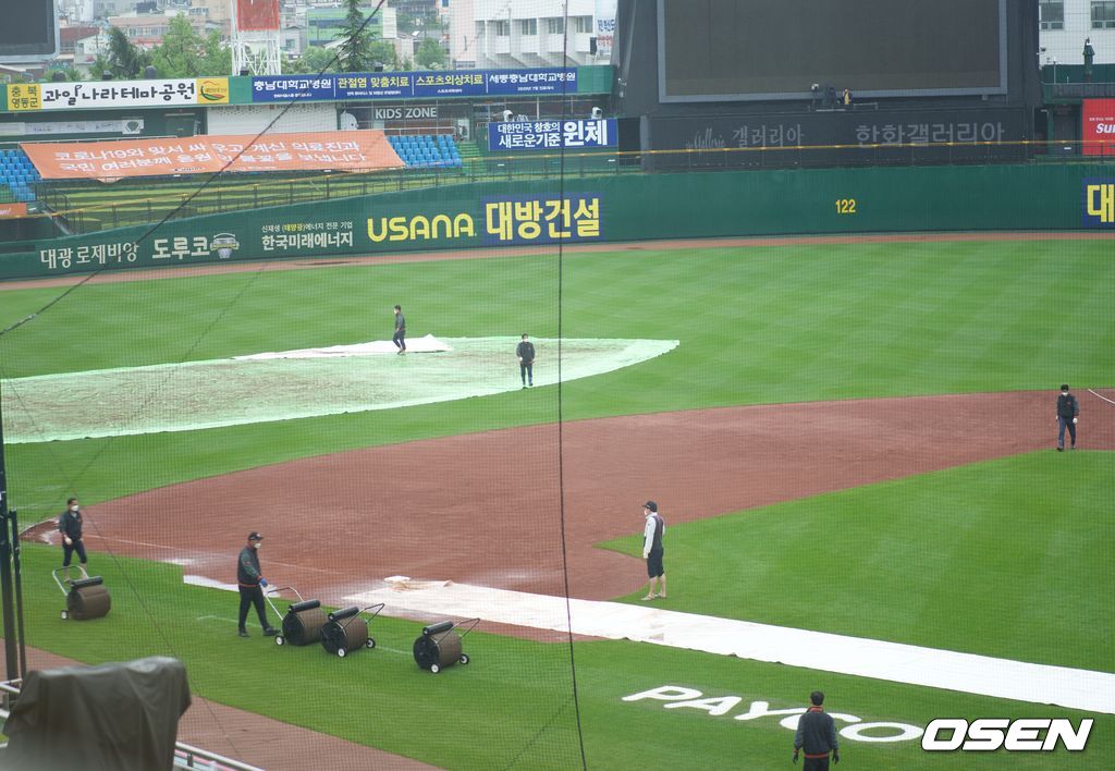 15일 대전 한화생명이글스파크에서 열릴 예정이던 롯데 자이언츠와 한화 이글스의 정규리그 1차전 경기는 오후 내내 내리던 빗줄기로 인해 취소 위기에 몰렸다.