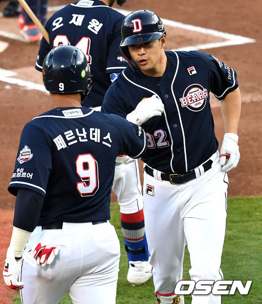 뚜껑을 열고 회를 거듭하자 폭발적인 방망이를 과시했다. 3회까지는 1득점에 그쳤다. 그러나 4회초 1사 만루에서 정수빈이 빠른 발을 앞세워 병살을 모면하자 밀어내기 볼넷과 페르난데스와 오재일이 연속 적시타를 날려 가볍게 4점을 뽑아 승부를 결정냈다.