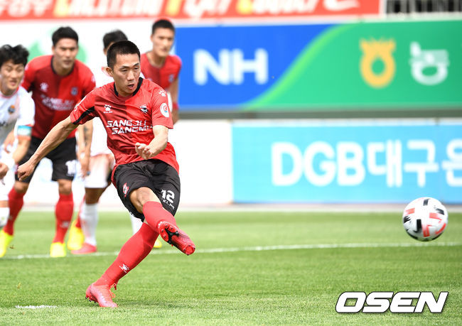 하지만 상주는 전반 21분만에 강상우의 선제골로 앞섰다. 강상우는 페널티박스 안에서 상대 수비수 임채민으로부터 파울을 유도해낸 뒤 직접 키커로 나서 득점에 성공했다.