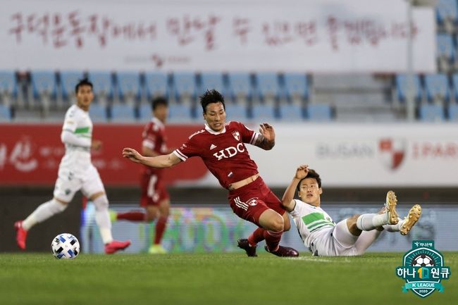 부산은 전반 32분 권혁규가 날카로운 패스를 전방으로 연결하며 김병오의 1대1 찬스를 연출했다. 하지만 김병오가 슈팅으로 연결하기전에 홍정호가 날카로운 태클로 차단했다.