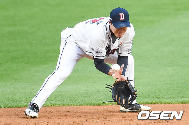 연장으로 흐른 승부. 이번에도 실책이 두산의 발목을 잡았다. 연장 11회초 1사 후 민병헌의 타석에서 유격수 땅볼 타구가 나왔다. 8회 류지혁 타석에서 대타로 들어가 유격수로 나온 김재호는 포구를 하지 못했고, 결국 출루를 허용했다. 평소 같았으면 쉽게 처리할 수 있었지만, 100%가 아닌 몸상태가 결국 독이 됐다.