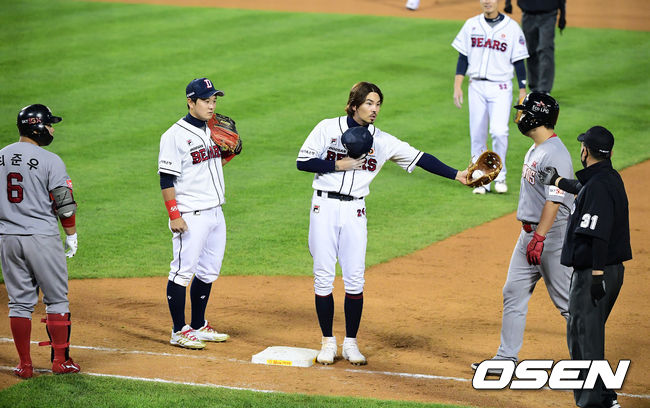 지난 26일 서울 잠실구장에서 열린 두산-SK의 경기. 2회말 타석에 들어선 오재원은 SK 선발 박종훈이 공을 던지는 순간 배트를 내려놓았다.