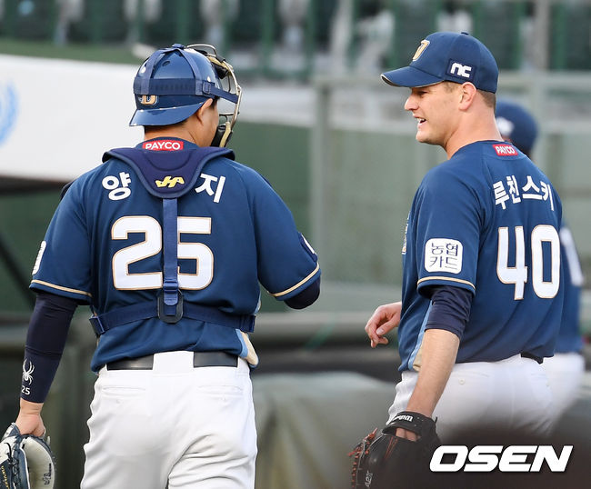 다음에는 NC내야진의 실책이 나왔다. 한승택의 2루 옆으로 빠지는 타구를 잘 걷어낸 김찬형이 그만 1루에 악송구를 했다. 3루 주자의 득점을 막을 수 없었지만 타자주자는 잡을 수 있었다. 결국 2루 주자까지 홈을 밟아 동점을 허용했다. 두 개의 수비가 낳은 2실점이었다. 루친스키의 호투도 공염불이 됐다.