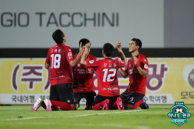 상주는 17일 오후 상주시민운동장서 열린 '하나원큐 K리그1 2020’ 7라운드 홈 경기서 서울을 1-0으로 제압했다.