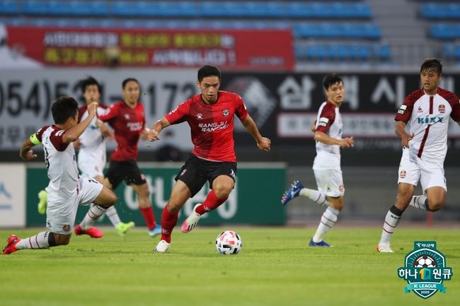 상주는 전반 36분 문선민이 박스 안을 돌파하다 한찬희와 몸싸움 과정 중 걸려 넘어졌지만 페널티킥이 선언되지 않았다. 전반은 0-0으로 마감됐다.