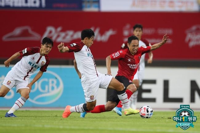 상주는 후반 25분 프리킥 기회서 박용우의 회심의 슈팅이 양한빈의 선방에 막혔다. 상주는 4분 뒤 배재우가 골망을 흔들었지만 오프사이드가 선언돼 골이 취소됐다.