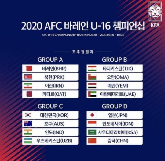 18일 말레이시아 쿠알라룸푸르의 AFC 본부에서 열린 U-16 챔피언십 조 추첨식에서 한국은 호주, 인도, 우즈베키스탄과 C조에 속했다.
