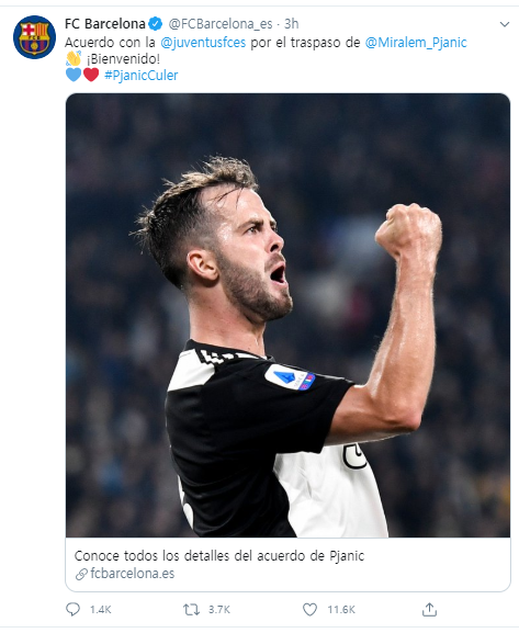 바르셀로나와 유벤투스는 30일(한국시간) 구단 공식 홈페이지를 통해 아르투르 멜루와 미랼렘 피아니치의 트레이드를 공식 발표했다.