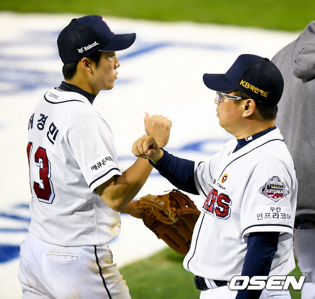 두산 베어스의 김태형 감독이 승리를 이끈 선수들의 활약에 박수를 보냈다.