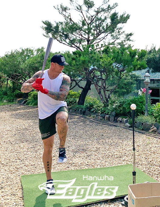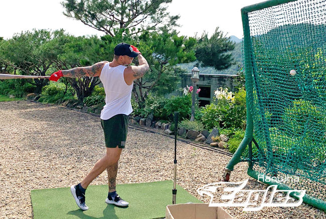 한화 새 외국인 타자 브랜든 반즈(34)가 자가 격리 중 훈련 근황을 공개했다.