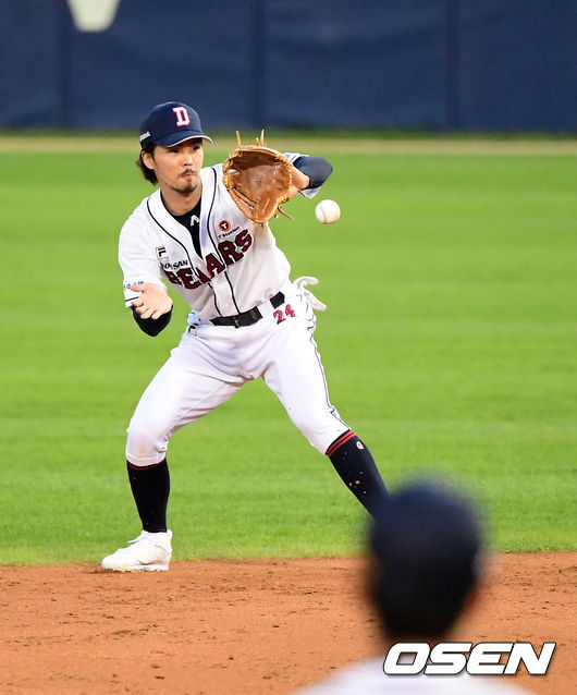 이날 경기를 앞두고 오재원은 외야 훈련을 실시했다.김태형 감독은 경기를 앞두고 "발은 빠른데, 무릎이 올라오지 않더라"라고 웃었다.