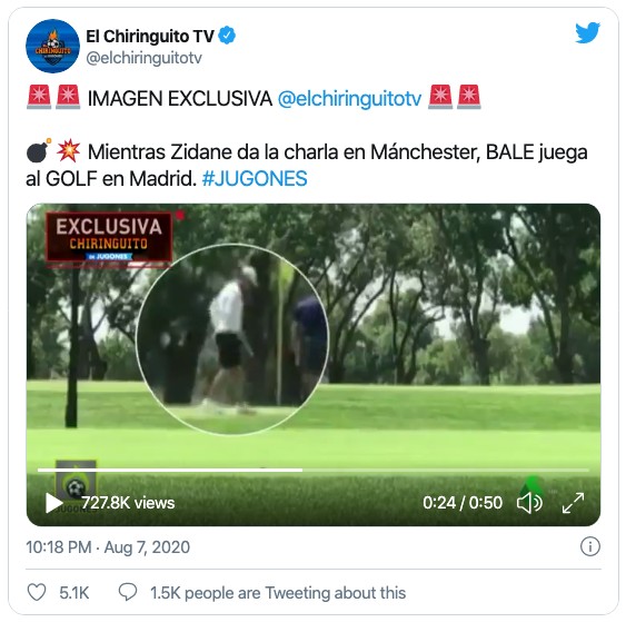 설상가상 베일이 골프하는 장면이 포착됐다. 엘 치링기토는 베일이 골프를 즐기는 장면을 공개했다. 흰색 모자를 쓰고 친구와 함께 골프 삼매경에 빠진 모습이었다.