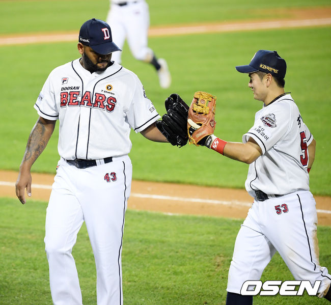 이후에는 양 팀 모두 점수를 내지 못하며 경기는 투수전으로 흘러갔다. 두산은 알칸타라가 7이닝을 2피안타 무실점으로 막았고, 이후 박치국, 이영하가 남은 이닝을 무실점으로 막았다. 한화는 장시환이 4이닝 4실점을 한 뒤 박상원-윤대경-김진영-장민재가 1이닝 씩 소화하며 남은 이닝을 무실점으로 지웠다. / bellstop@osen.co.kr