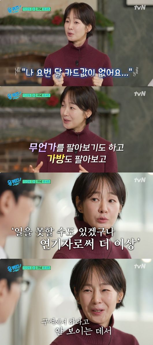 명세빈은 ‘유퀴즈’에서 이혼 후 활동을 하지 못하며 겪은 일들도 언급했다. 명세빈은 “’나 이번 달 카드값이 없어’ 그러면 이제 ‘뭘 팔까?’부터 시작해서 가방도 팔아보고, 무언가를 또 팔아 보기도 하고. 절실하다”라고 말했다.