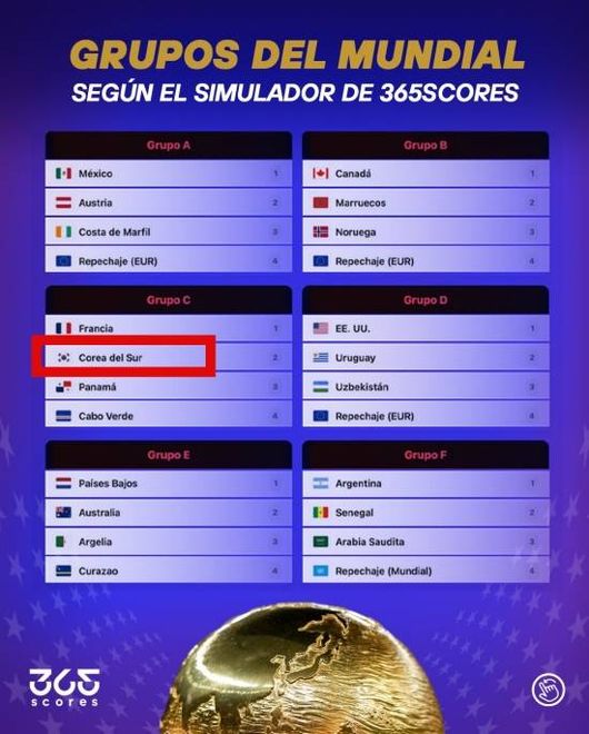 365스코어스의 시뮬레이션에서 한국은 프랑스, 파나마, 카보베르데와 함께 C조에 묶였다. 프랑스라는 거대한 벽은 분명 존재하지만, 파나마와 카보베르데는 상대 전력만 놓고 보면 한국이 충분히 승점을 노릴 수 있는 팀들로 평가된다. 월드컵이 48개국 체제로 확대되면서 조 1·2위뿐 아니라 각 조 3위 중 성적이 좋은 8팀까지 32강에 진출할 수 있기 때문에 파나마와 카보베르데전은 조별리그 판도를 뒤흔드는 핵심 승부가 된다.