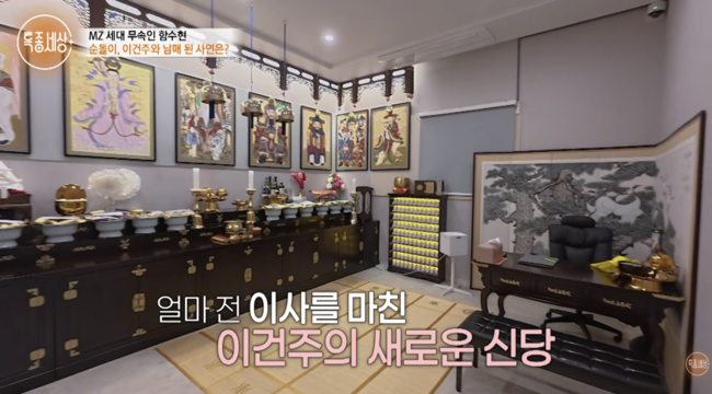 지난해 여름 신내림을 받은 이건주는 4개월 전 서울을 떠나 새로운 곳에 둥지를 틀었다. 이건주의 신당이 있는 곳이기도 하다. 이건주는 무속인의 삶에 집중하기 위해 이사를 했고, 신당 역시 이전보다 넓고 쾌적했다.
