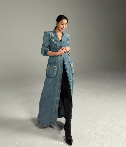 또 다른 사진에는 이민정이 긴 데님 롱 코트를 완벽히 소화하며 완벽한 비율을 뽐냈다. 캐주얼하면서도 우아한 무드가 돋보이는 가운데 이민정은 서로 다른 콘셉트의 스타일을 찰떡 소화하며, 반전 매력을 선보여 눈길을 사로잡았다.
