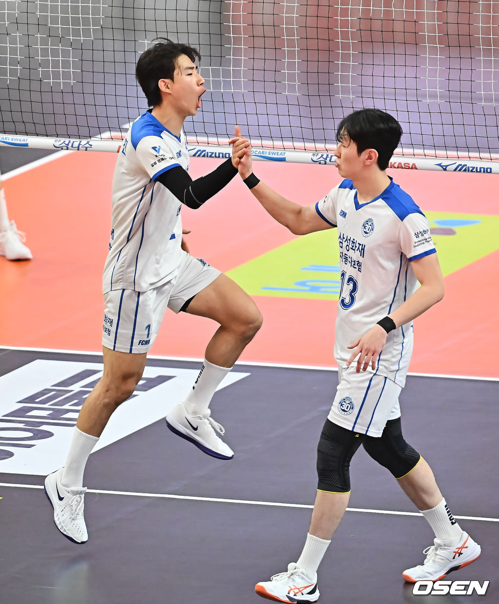 삼성화재 김우진이 득점에 성공한 후 김준우와 기쁨을 나누고 있다. 2026.01.17 / foto0307@osen.co.kr