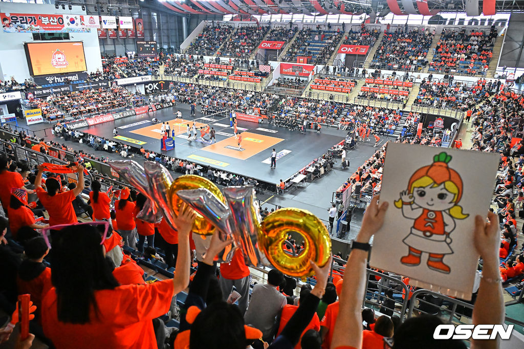 OK저축은행 팬들이 열기 가득 응원을 하고 있다. 2026.01.17 / foto0307@osen.co.kr