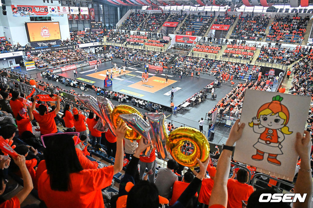 OK저축은행 팬들이 열기 가득 응원을 하고 있다. 2026.01.17 / foto0307@osen.co.kr