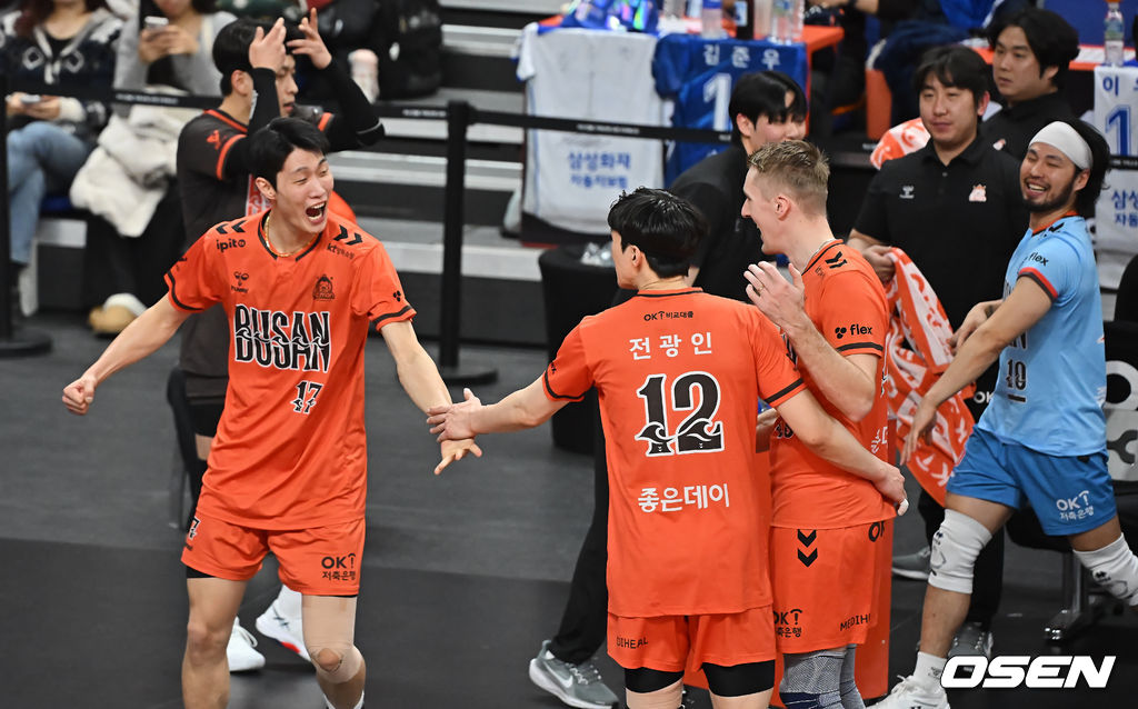 17일 부산 강서실내체육관에서 진에어 2025-2026 V리그 남자부 OK저축은행과 삼성화재의 경기가 열렸다.