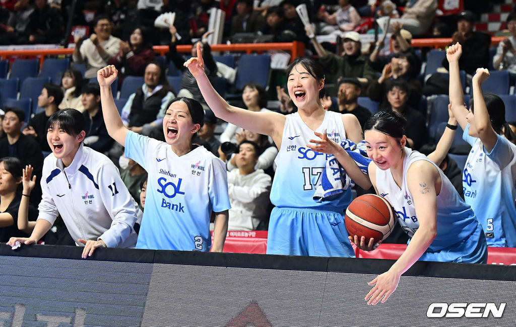 환호하는 신한은행 선수들