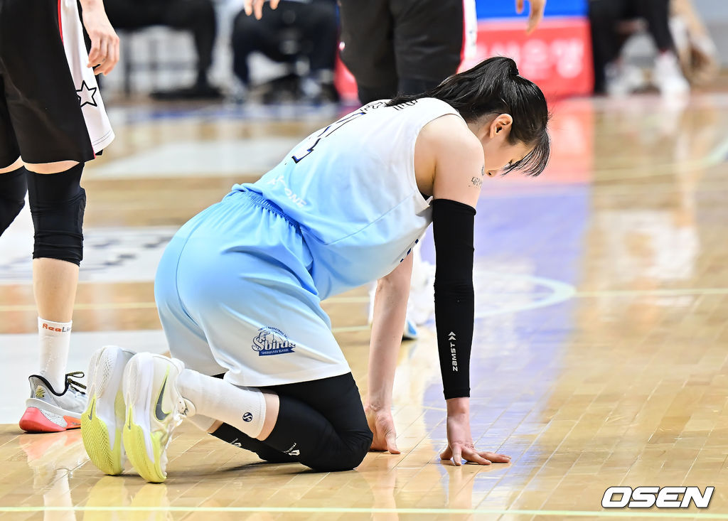 인천 신한은행 신이슬이 2차연장까지 가는 접전에 힘들어하고 있다. 2026.01.18 / foto0307@osen.co.kr