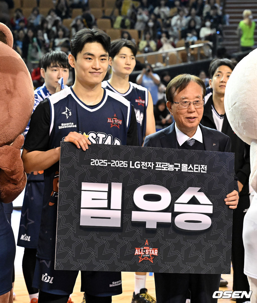 우승을 차지한 팀 브라운 유기상이 이수광 총재와 기념촬영을 하고 있다. 2026.01.18 /sunday@osen.co.kr