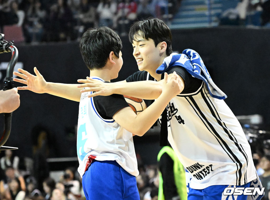 덩크 콘테스트 우승을 차지한 조준희가 도우미로 나선 중학생 선수와 포옹을 나누고 있다. 2026.01.18 /sunday@osen.co.kr