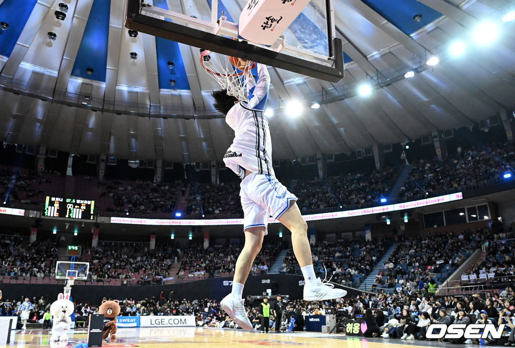 덩크 콘테스트에 참가한 김민규가 멋진 덩크슛을 선보이고 있다. 2026.01.18 /sunday@osen.co.kr