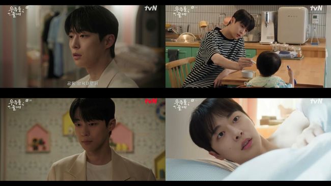 이날 방송에서는 태형(배인혁 분)과 현진(노정의 분)의 공동육아가 본격적으로 시작됐다. 현진이 출근한 사이 우주(박유호 분)를 돌봐야 했던 태형은 우주의 일상을 일일이 보고하라는 현진에게 반기를 들 듯 자신만의 편법 육아를 선보여 웃음을 자아냈다.