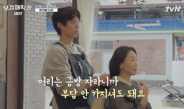 13일 방송된 tvN 예능 ‘보검매직컬’에서는 시골 마을 헤어샵 첫 영업 막바지 풍경이 그려졌다. 이용사 국가자격증을 보유한 박보검은 이상이, 곽동연과 함께 손님들을 맞으며 분주한 하루를 보냈다.