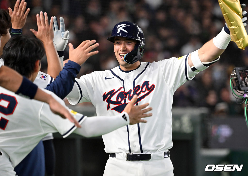 3회말 1사에서 한국 셰이 위트컴이 좌월 솔로 홈런을 치고 더그아웃에서 동료들과 환호하고 있다. 2026.03.05 /spjj@osen.co.kr