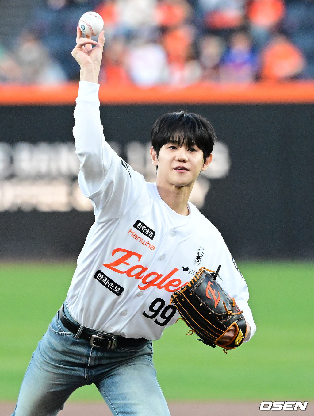 이날 가수 하이라이트 양요섭이 한화 이글스의 초청으로 ‘이글스타데이’에 참석해 시구자로 마운드에 올랐다.