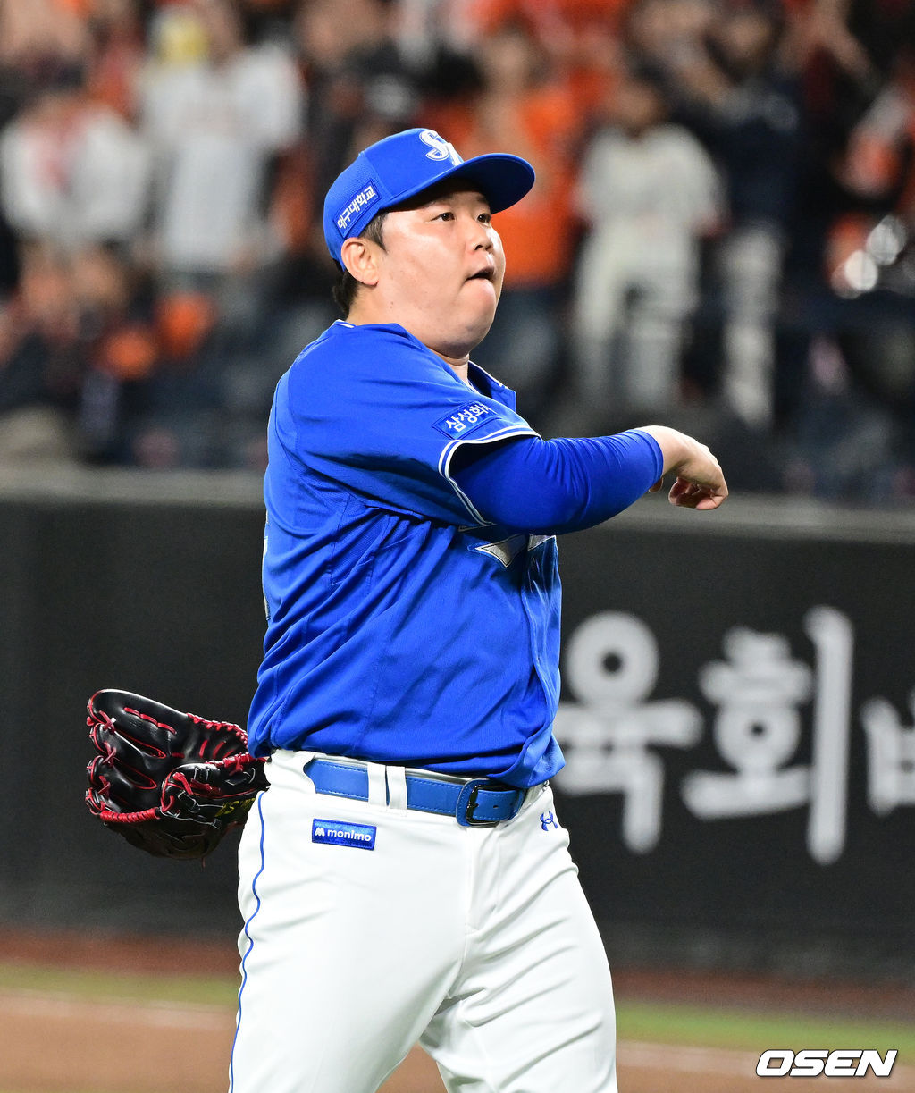 8회말 2사 만루에서 삼성 이승현이 한화 하주석을 삼진 처리하며 숨을 돌리고 있다. 2026.04.14 / jpnews@osen.co.kr