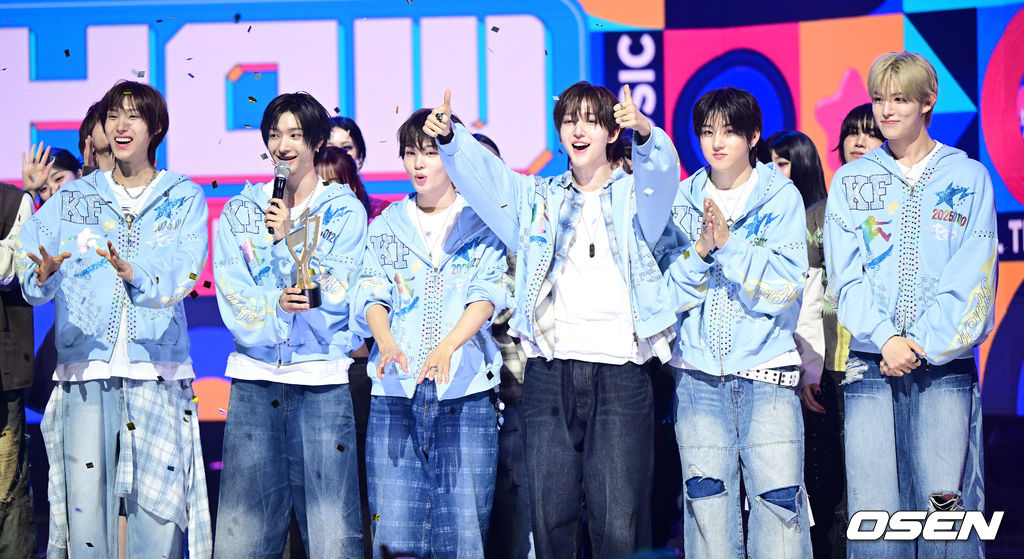 그룹 킥플립 쇼 챔피언 1위를 차지한 뒤 기뻐하고 있다. 2026.04.15 / dreamer@osen.co.kr