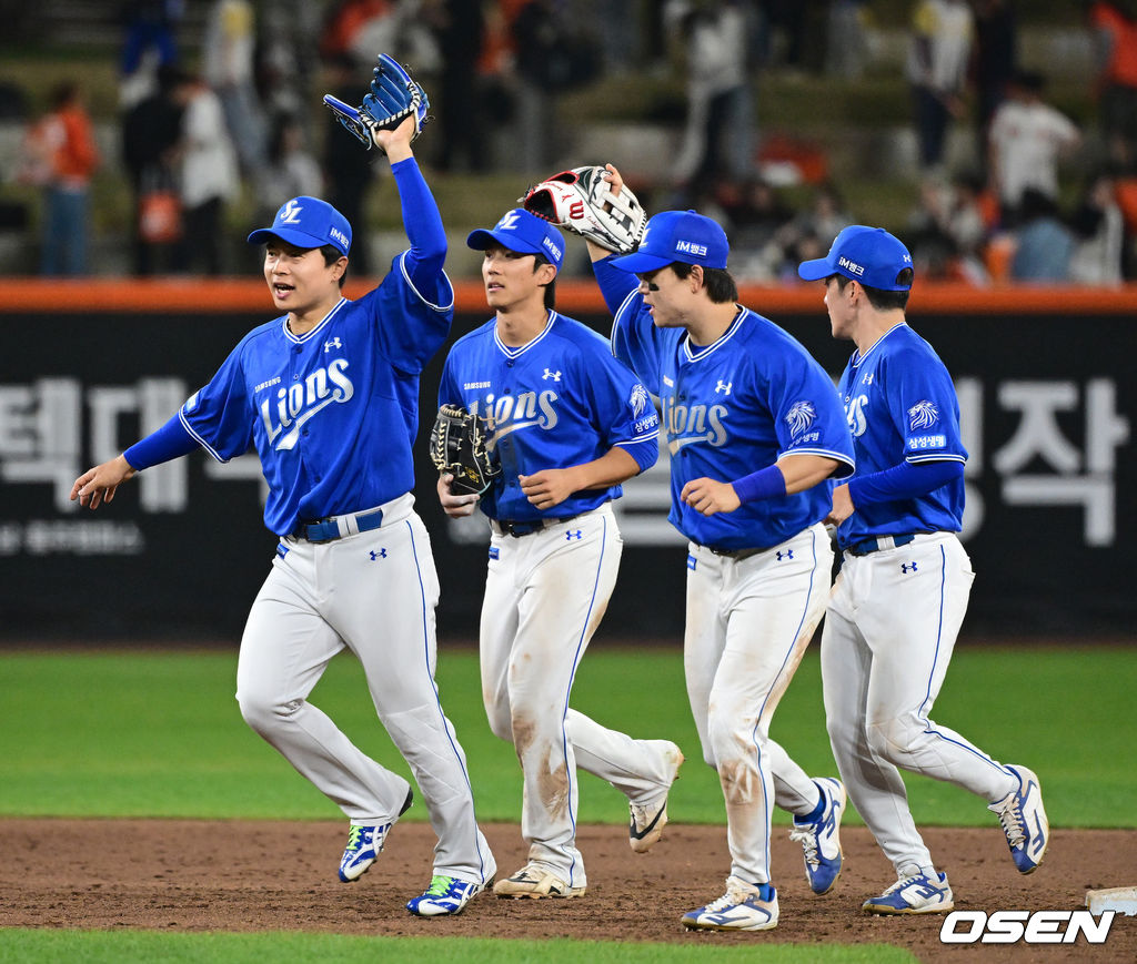 경기를 마치고 삼성 선수들이 승리를 기뻐하고 있다. 2026.04.15 / jpnews@osen.co.kr