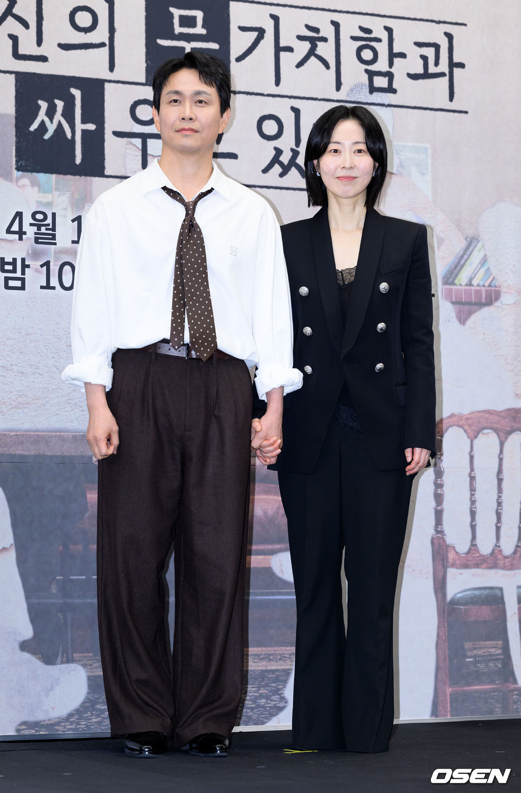 배우 오정세, 강말금이 포토타임을 가지고 있다. 2026.04.17 /sunday@osen.co.kr