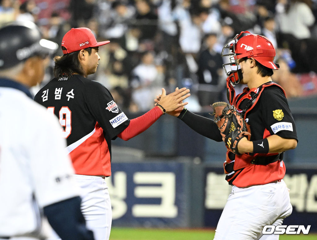 경기 종료 후 KIA 김범수, 주효상이 환호하고 있다. 2026.04.17 /sunday@osen.co.kr