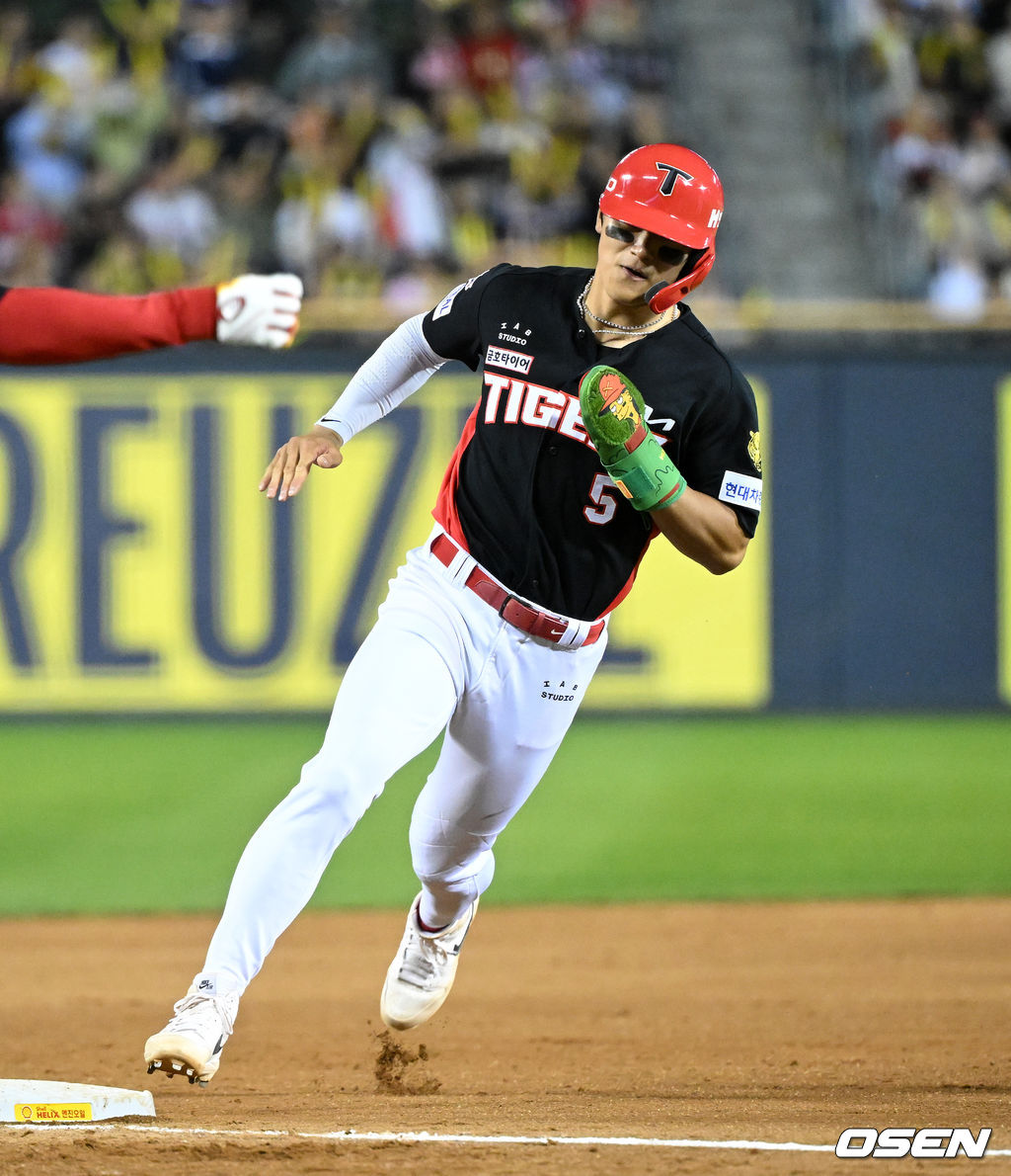 9회초 2사 2루에서 KIA 박정우의 적시타 때 김도영이 그라운드를 달리고 있다. 2026.04.17 /sunday@osen.co.kr