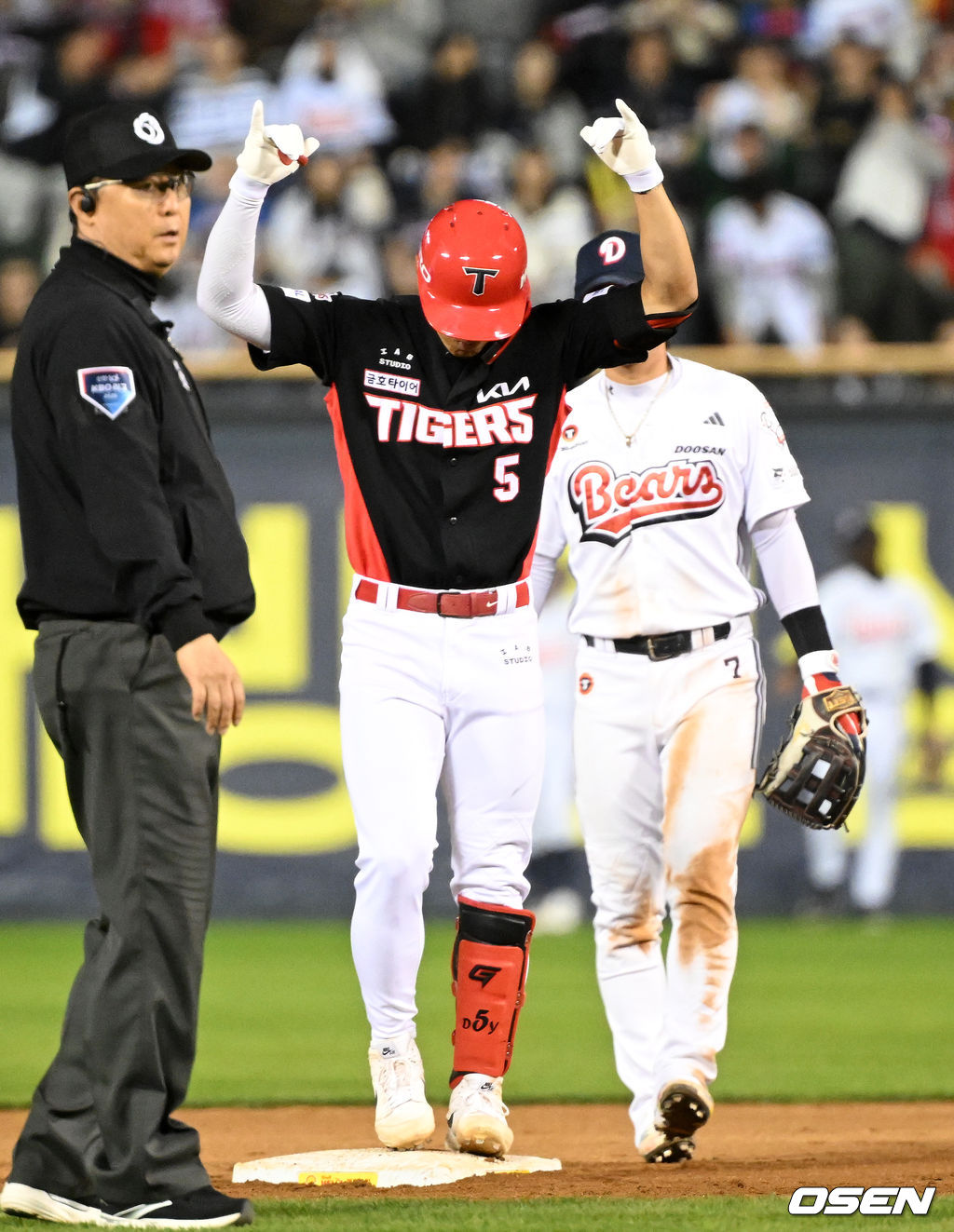 9회초 2사 1루에서 KIA 김도영이 우중간 적시 2루타를 치고 환호하고 있다. 2026.04.17 /sunday@osen.co.kr